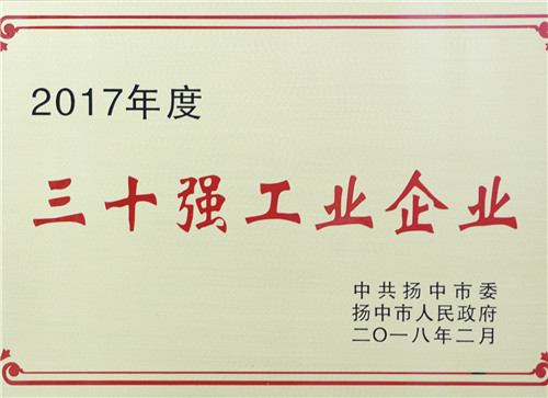 近日,扬中市政府召开2017年度突出贡献企业颁奖大会,sunbet集团荣获2017年度“三十强工业企业”称号,名列第五位,排名比2016年晋升2位。