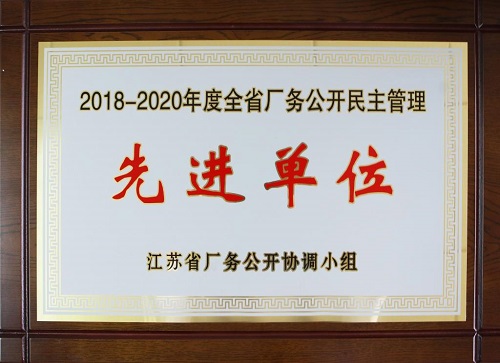 近日,sunbet平台官网入口集团荣获“2018-2020年度江苏省厂务公开民主管理先进单位”称号,这是对集团多年来厂务公开、民主管理水平和成效的充分肯定和认可。